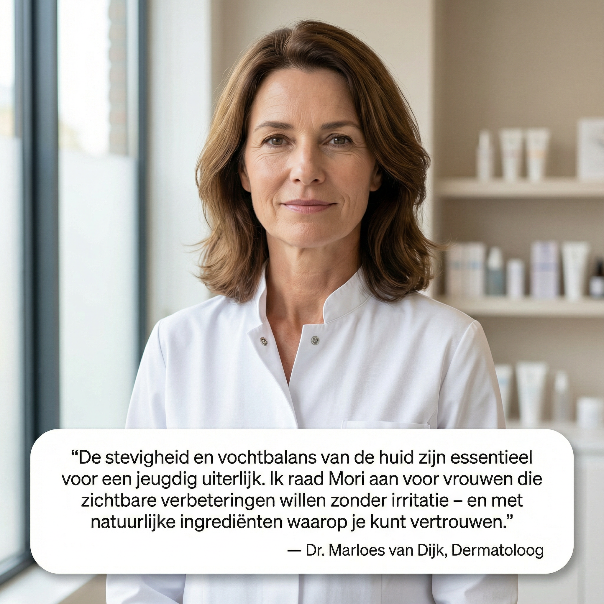 "Geweldige resultaten met Mori™! Mijn armen en dijen voelen strakker aan en mijn huid heeft een heel nieuwe uitstraling gekregen – glad, gehydrateerd en gezond. Ik gebruik het elke ochtend na het douchen en het voelt als luxe thuis. De subtiele geur en natuurlijke ingrediënten zijn gewoon de kers op de taart. Ik voel me jonger – en dat zie je ook!"